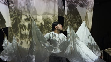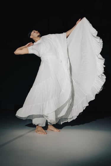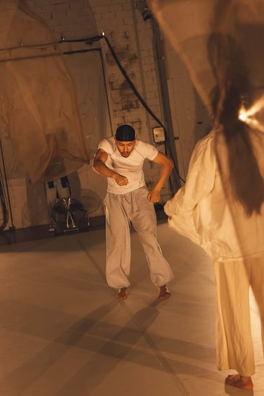OVER 16 YEARS, CUMBIA SHAPED HIS BODY, HIS SENSE OF BELONGING, AND HIS UNDERSTANDING OF DANCE. YET KUMBÉ EMERGES FROM THE MOMENT WHEN THAT LANGUAGE NO LONGER FEELS LIKE HOME. THROUGH MOVEMENT, LIVE MUSIC, VOICE, AND VIDEO MAPPING, THE PIECE TRACES THE DELICATE PROCESS OF RELEASING WHAT ONCE DEFINED HIM, OF ACCEPTING THAT THE DANCE HE CARRIED FOR SO LONG NO LONGER BELONGS TO HIM.